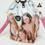 水着の女性がプリントされたDEAD STOCKのタペストリーを解体してCOMUSUBIに仕上げた1点もの