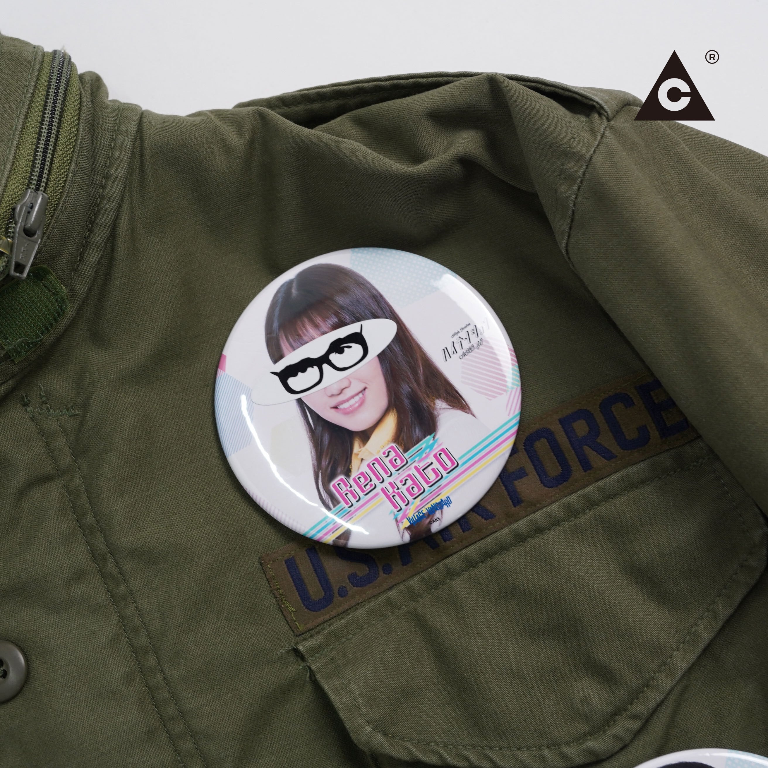 インパクト大なサイズ感の缶バッチ。