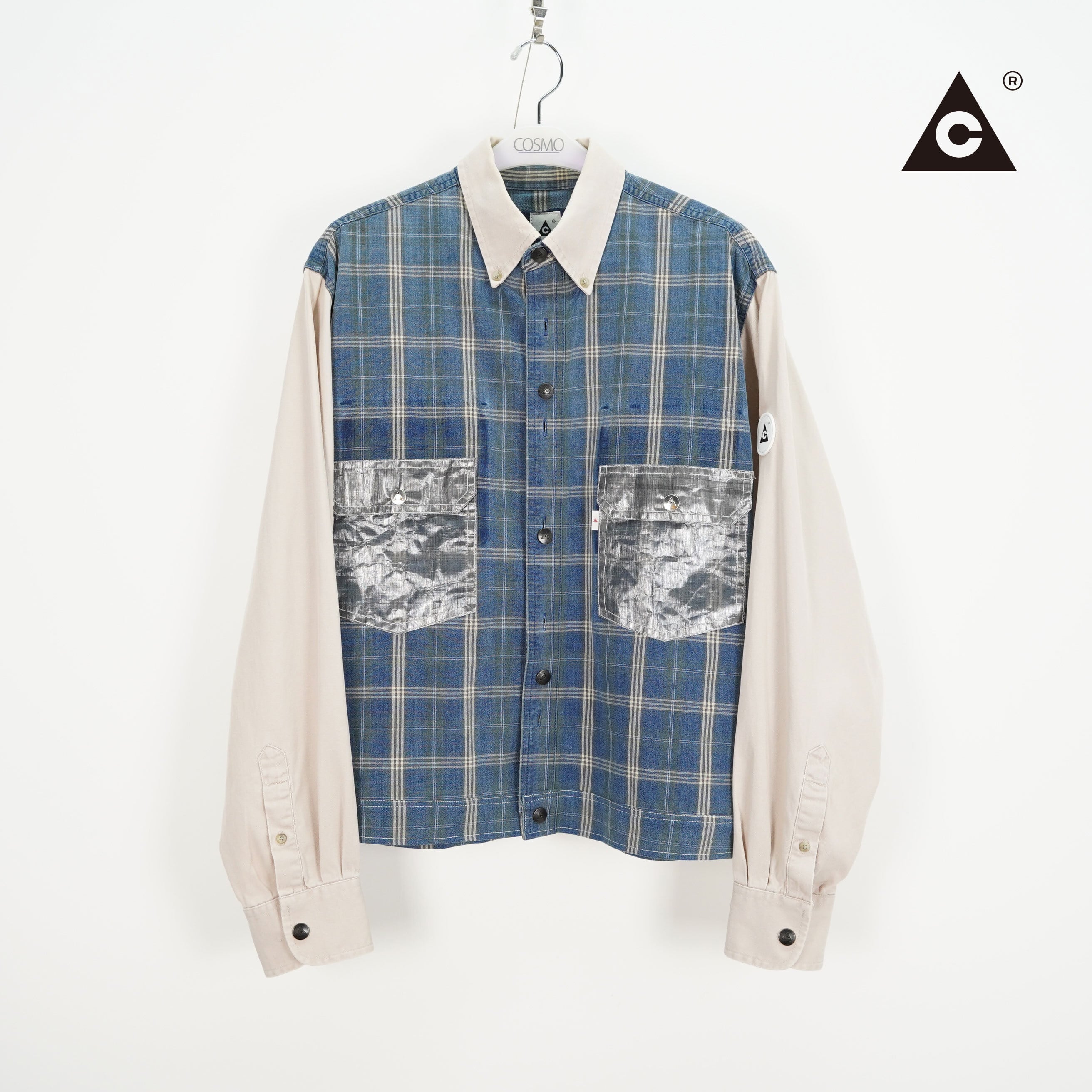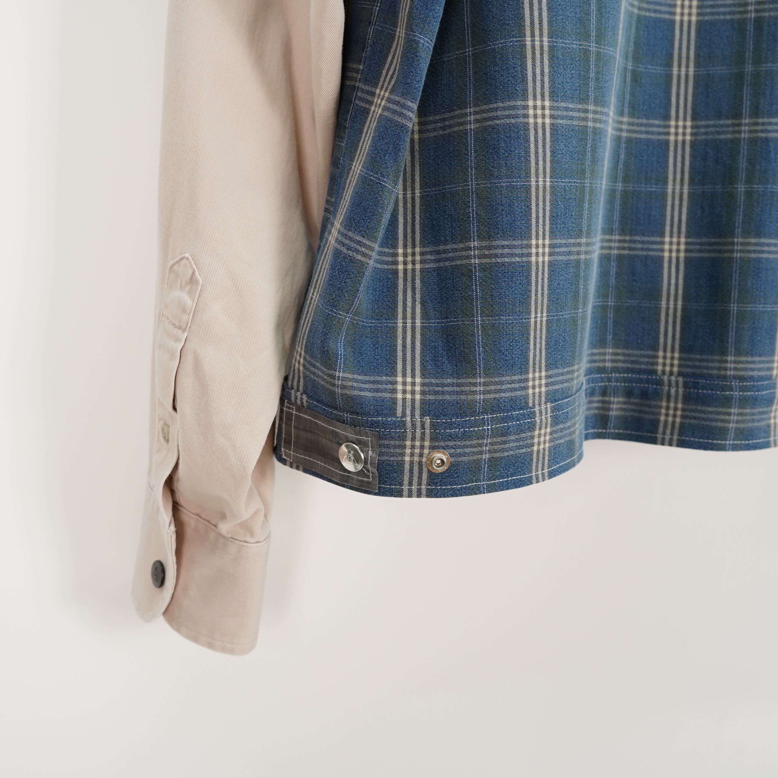 素材感 : 見頃はコットンチェック、袖と襟はチノシャツのハイブリット(元から)