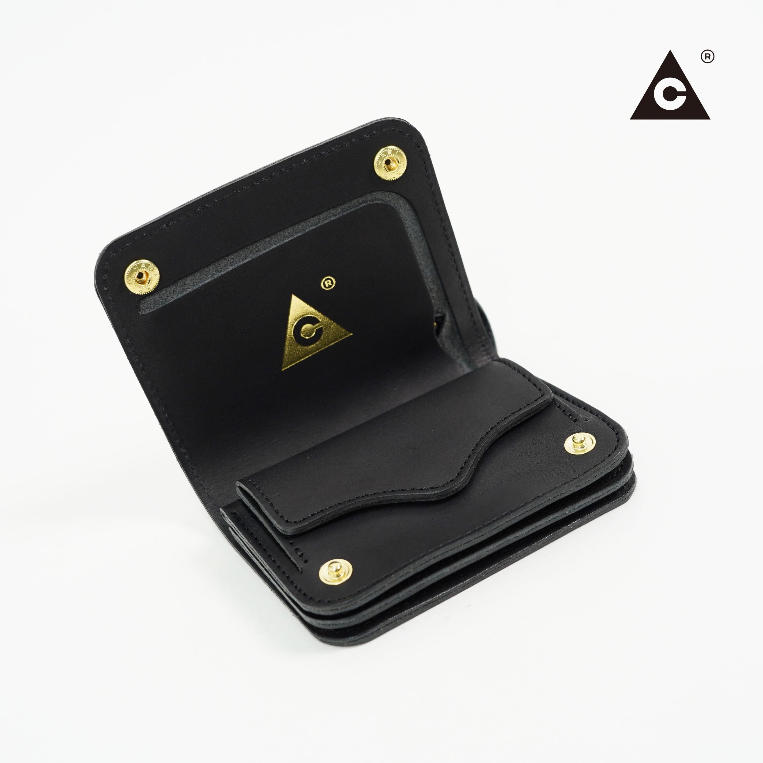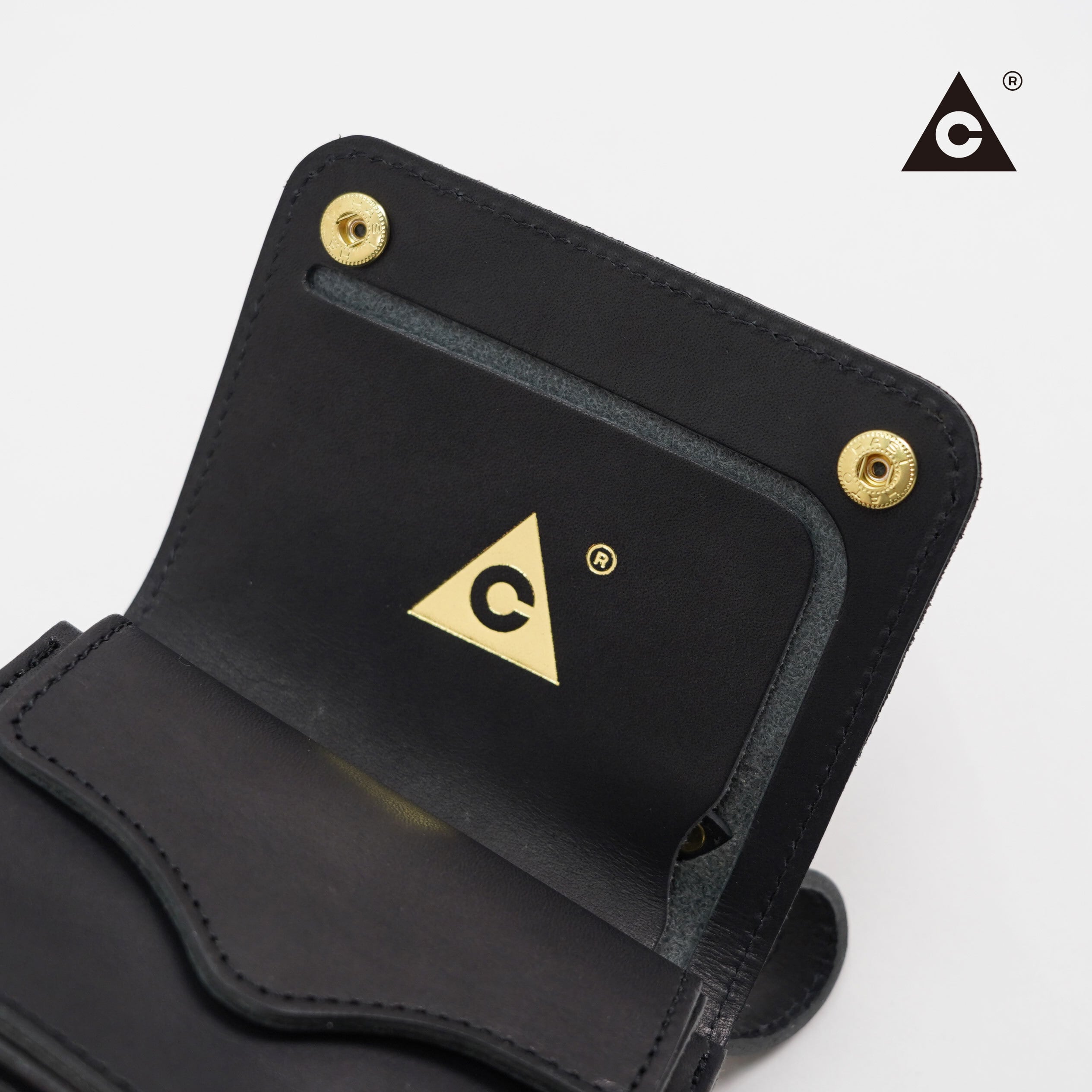トラッカーウォレットの特徴である二つのボタンによって開閉するシンプルな造りをベースに